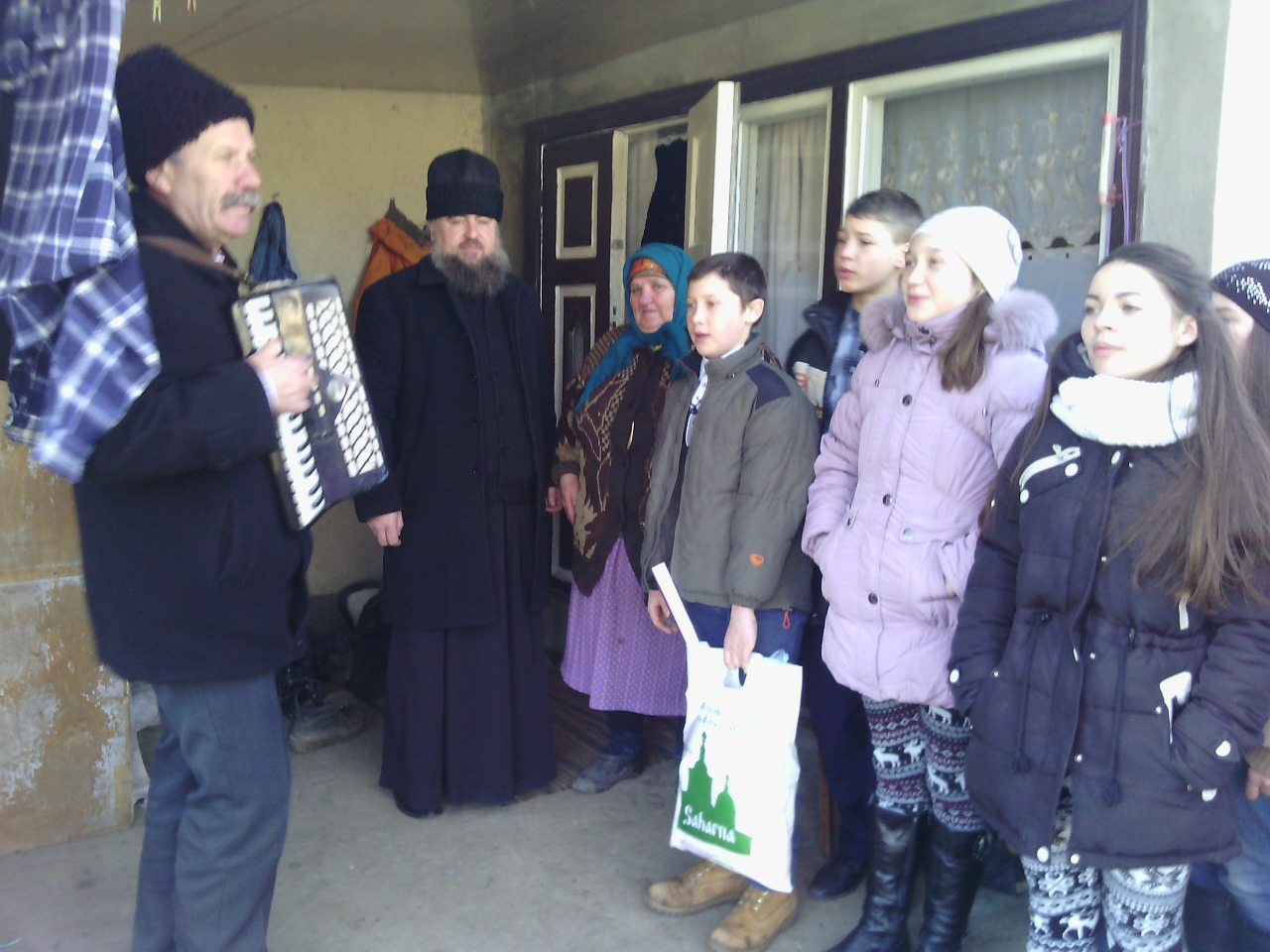 În ajunul frumoasei sărbători și a praznicului luminos ,, Nașterea Domnului”, un grup de elevi din IP Gimnaziul Saharna Nouă alături de preoții parohi ai satelor Saharna Nouă și Bucișca, Ieromonahul Vartolomeu Murea, Arhimandritul Casian Iurcu și profesorul de religie Ieromonahul Vasilisc Donica, cu binecuvântarea și aportul starețului Sfintei Mănăstiri Saharna, Arhimandritul Adrian Baciu, au împărțit daruri vestind frumoasa bucurie a ”Nașterii Domnului” cu câțiva dintre bătrineii singuratici ai satelor comunei Saharna Nouă și de la azilul de bătrâni din or. Rezina ”Căsuța Bunicii’’, arătând ca cei care au fost păstrători credinței, frumosului, a tradițiilor și obiceiurilor străbune nu sunt uitați. Pentru lucrurile mărețe și sfinte care le-au păstrat și transmis tinerii generații, elevii i-au încântat cu un program de colinde și i-au urat de sănătate și de voie bună, aducându-le în dar câte un mic colet cu merinde pentru masa de sărbătoare.