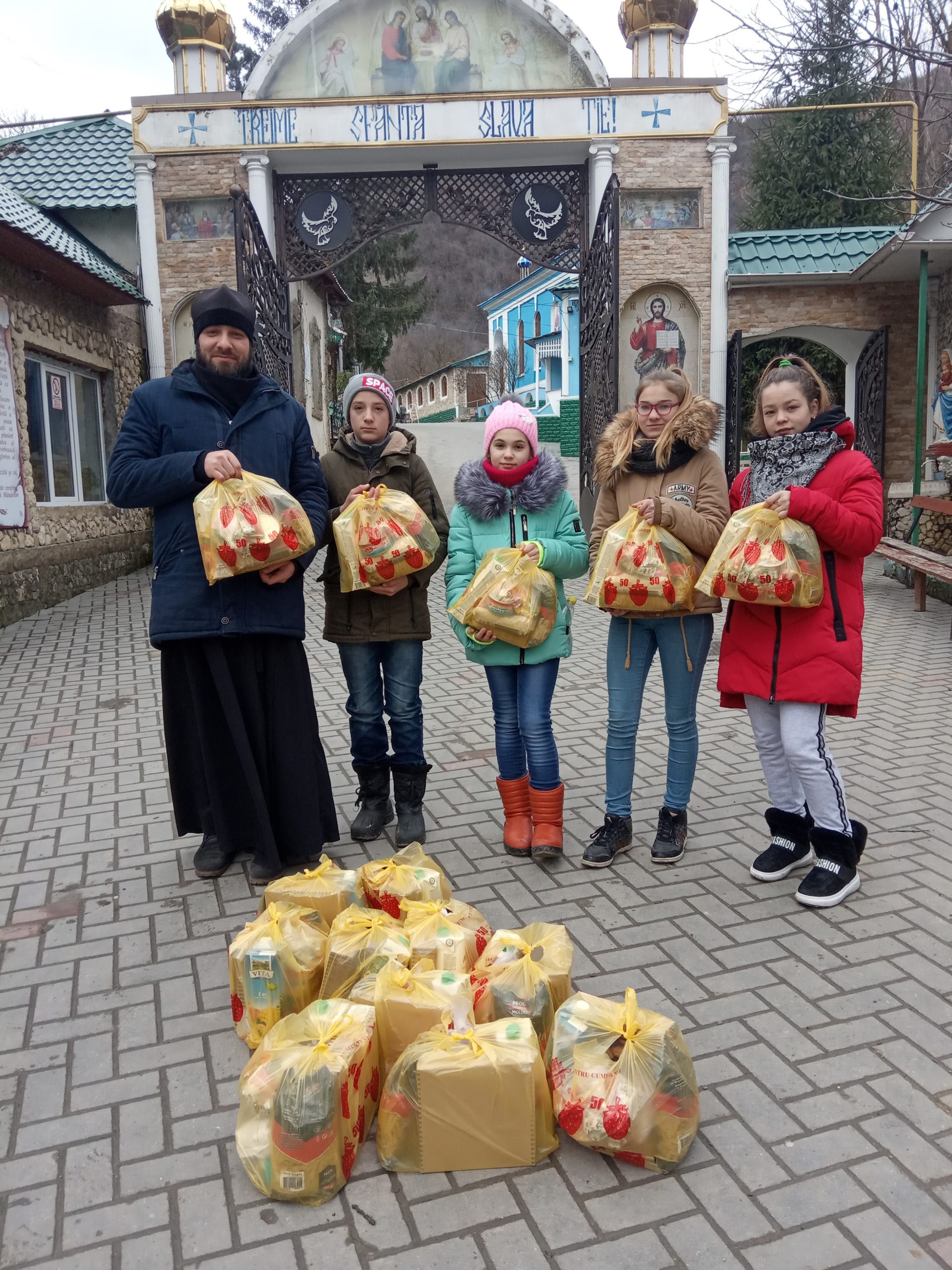 Cu binecuvântarea și sprijinul financiar al preacuviosului părinte Adrian Baciu, egumenul Sfintei Mănăstiri Saharna, în ajunul praznicului măreț al Nașterii Domnului, câțiva elevi îndrumați de către ieromonahul Vasilisc Donica, cleric al aceluiași așezământ monahal, care le este și profesor de religie în gimnaziu din s.Saharna Nouă, au vestit prin colinde venirea în lume a Mântuitorului și au împărțit daruri și merinde bătrânilor singuratici ai satului Saharna.