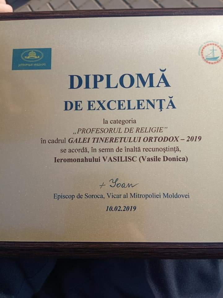 Printre ei, cu Diplomă de excelență, la categoria ,, Profesorul de religie”, a fost menționat și părintele Vasilisc , care cu dăruire muncește pentru a lumina comunitatea de elevi și profesori din gimnaziul nostru, împărțind lumină – din Lumina și Cuvântul lui Dumnezeu.